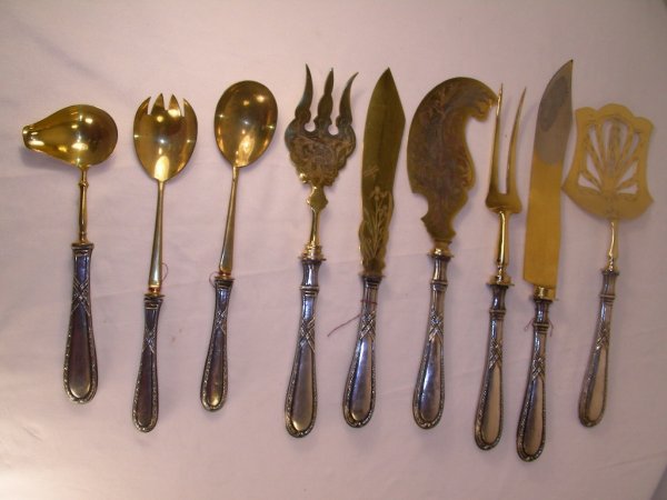 CONTINENTAL GOLD WASH SILVER SERVING FLATWARE 9pc