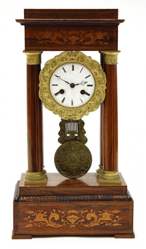Continental inlaid portico clock