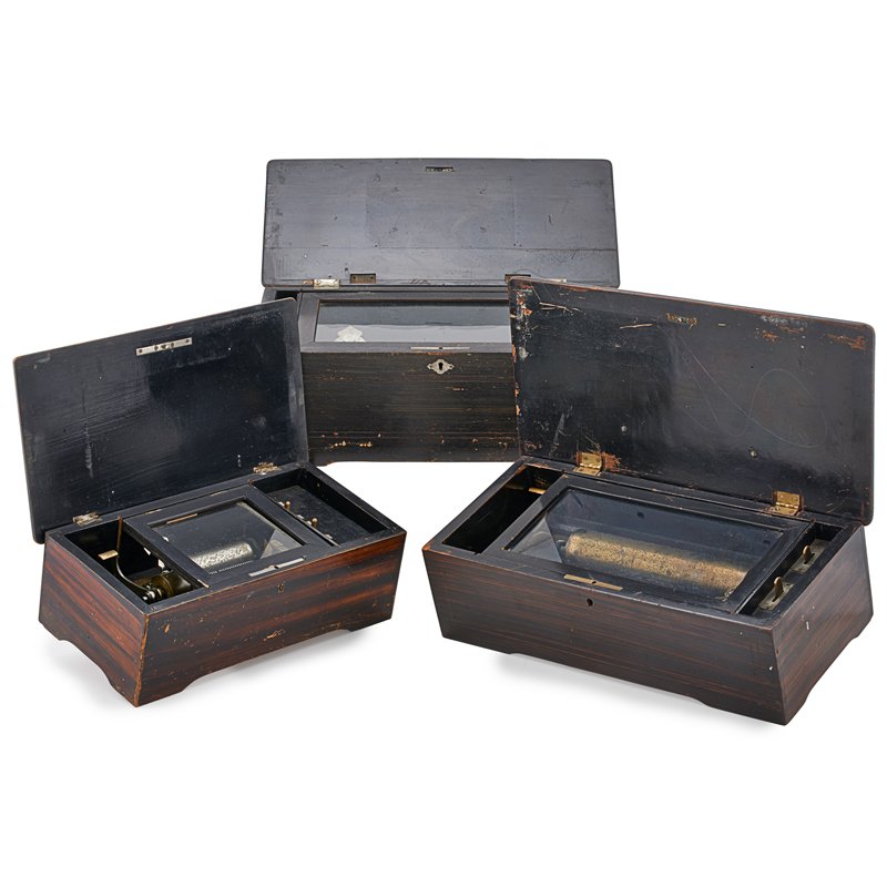 SIX ASSORTED ANTIQUE WOODEN BOXESMar 07, 2026Swiss Music BoxFeb 26, 2026(4) COLLECTION OF CARVED WOOD, INLAID & LEATHER-CLAD TABLE BOXES5 days LeftTWO ANTIQUE WOODEN DESK BOXES / CASKETMar 07, 2026ANTIQUE SWISS CYLINDER MUSIC BOX FABRIQUE DE GENEVE5 days LeftThree Antique Toleware Storage Boxes3 days Left2 Music Boxes, Symphonian Disc Player and French Cylinder Music BoxMar 04, 2026Antique French Mahogany Cylinder Music Box circa 1920 with Six Classical SongsMar 03, 202619th Century Tea Caddy & Other BoxesMar 07, 2026Three Antique English Boxes3 days LeftPair of card presses and a bezique set. 19th century. Inclu...3 days Left3 English Boxes & Erhard & Sohne Bronze Box, 19th CFeb 25, 2026Three George III inlaid mahogany knife boxes, late 18th/early 19th century4 days LeftThree Victorian Tunbridge Ware Boxes5 days Left19TH-CENTURY KASHMIR INLAID DRESSER/JEWELRY CASKET6 days LeftAntique Music Box of Imperial Russia. Moscow, Muir & Mirrielees, Early 20th Century. Rare SwissMar 01, 2026