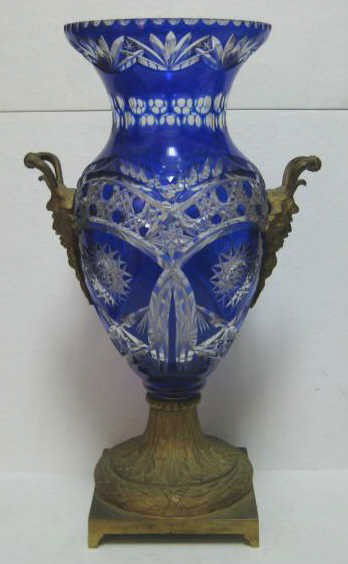 CONTINENTAL ORMOLU MOUNTED COBALT BLUE GLASS VASE