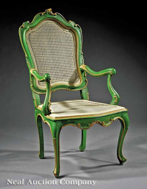 Continental Paint-Decorated and Caned Fauteuil