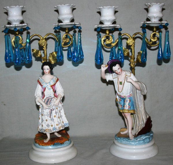 CONTINENTAL PORCELAIN CANDLESTICKS WITH PRISMS