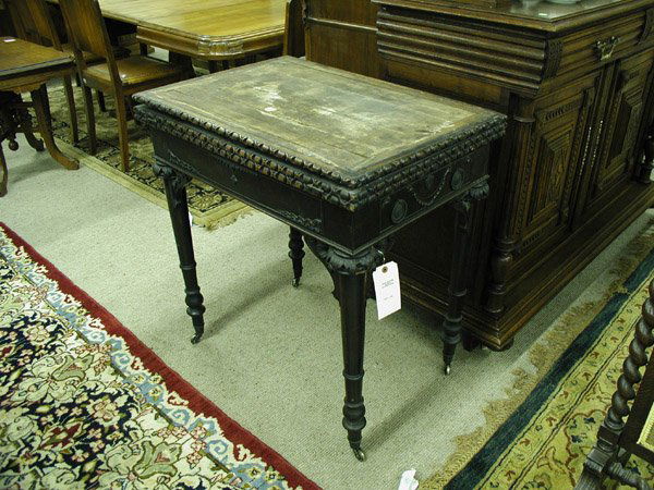 Antique Walnut? Wooden Side Table w/ Scalloped Top & Fluted Legs. Good Condition. See pics.Carved Wooden Console Table with Scroll Details3 days LeftAntique Carved Fancy Oak Library TableFeb 18, 2026Two Drawer Carved Oak Partners DeskFeb 18, 2026CARVED OAK COFFER5 days LeftAntique hand-carved country rustic dresser or sideboard4 days LeftAntique Oak Library Table (Desk) Lion's HeadsFeb 18, 2026CONTINENTAL STYLE PAINT DECORATED CENTER TABLEFeb 19, 2026Vintage Walnut? Wood Finish Side Table w/ Ornate Details. Good Condition. See pics.Vintage Wooden Overbed or Sofa Tray Stand. Excellent Condition. Measures 23" x 15" x 19"Antique Carved Oak Library Desk Table. Twist legs. Carved top.3 days LeftCarved Oak "Monks" Fold-Over Side Table, 19 1/2 x 13 1/2 x 18"h.1 day LeftA large rococo style wall console in carved oakFeb 24, 2026Regency Style Tooled Leather Inset Wood Writing DeskFeb 21, 2026John Miller & Co. Large Partners DeskFeb 18, 2026French Empire Ebonized Wood and Boulle Inlaid Desk, 1840, H 29.75" W 53" Depth 29.75"Feb 19, 2026