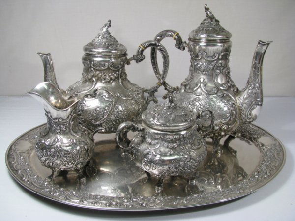 ENGLISH SILVER LUSTRE CERAMIC TEA AND COFFEE ARTICLES, LOT OF SIXMar 04, 2026Puiforcat (Hermes) - Stunning 6pc. Antique French Sterling Silver Tea Set, Empire Style, NoBOIN-TABURET, FABERGE - 8pc. FRENCH ANTIQUE 950 STERLING SILVER TEA SET + 6 FABERGE ESPRESSO CUPS !Gorham Sterling 5 Pc. Coffee and Tea SetMar 10, 2026Rococo Style Silver Plate Coffee And Tea Set (7-piece), C. Mid-late 20th Century2 days LeftLouvre Silver Shop Blossom Mexican Sterling Silver 6pc Tea Set3 days Left4 Piece Silver Plate Tea SetMar 04, 20265 Pieces Preisner Sterling Silver Tea Set with a Large Oval English Sterling Silver Tray4 days LeftContinental silver tea set.460 Lots AwayFive-Piece Silverplate Tea and Coffee Service in the “King Francis" Pattern with TrayMar 07, 20266PC STERLING TEA SERVICE, INTERNATIONAL, 133 TOWMar 07, 2026ANTIQUE SILVER-PLATE CHILDREN'S TEA SET IN ORIGINAL FITTED BOXMar 05, 2026Reed and Barton "Regent" Tea & Coffee Service Set (6)Mar 07, 20263 pcs Vintage Rochester Silver Plated Tea Pots w/ Floral Details. Good Condition. See pics.Bailey, Banks & Biddle Queen Anne Sterling Tea Set3 days LeftGerman Hand Chased Angkor .900 Silver Tea Service Set2 days Left