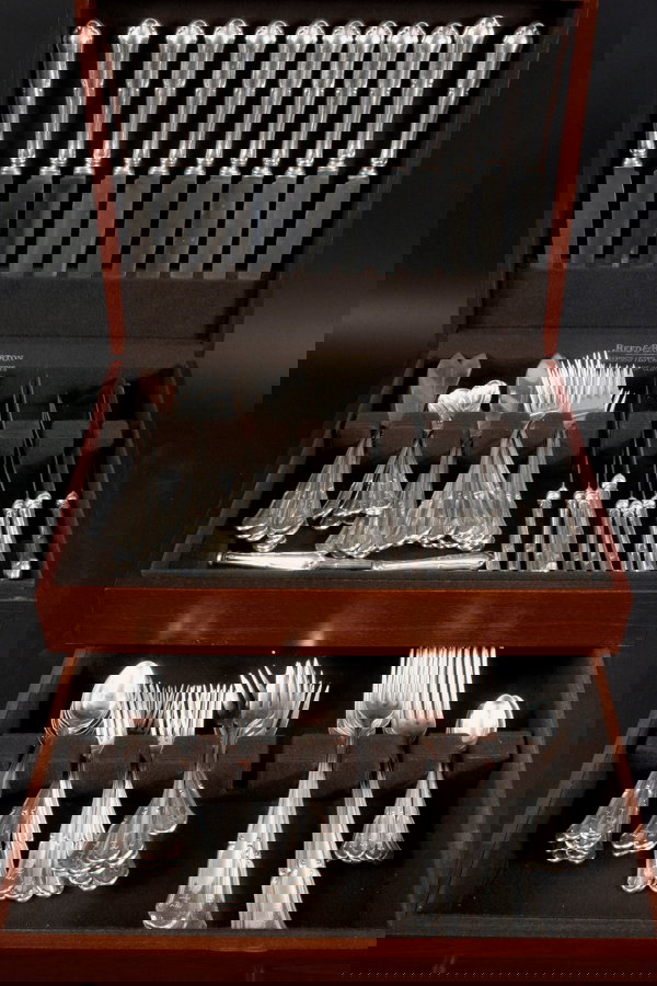 An assembled group of American and Continental silver flatware and tableware6 days LeftSilver Flatware Service for Six, Heavily Chased16 hrs LeftGeorg Jensen Continental Sterling Silver Teaspoon 5.5 Inch Flatware2 days LeftTiffany & Co. Vine Pattern 60 Pc. Sterling Flatware ServiceApr 24, 2026162 Piece Maison Cardeilhac French Sterling Silver Flatware Set with BoxApr 19, 2026WMF 800 Silver Flatware Set 24 Pieces Vintage Box Mid-Century ModernApr 21, 2026WMF 800 Silver Flatware Set 24 Pieces Vintage Box Mid-Century Modern3 days LeftTIFFANY & CO Sterling Silver Elsa Peretti Fork and Spoon Flatware Set With BoxApr 26, 2026Antique Continental Carved Mahogany Settee C1920 Elegant Upholstered Design4 days LeftContinental Tunbridge Inlaid Faux Book Puzzle Box4 days LeftGroup of Cylinder RecordsApr 25, 2026Lot of misc. flatware in wood boxApr 20, 2026Lot of silverplate flatware in wood boxApr 20, 2026Continental "800" Silver Oval Vanity Box, Overall Embossed Design, 1 3/4"h x 3"wApr 21, 2026Elie Bleu Handmade Mahogany 75 Count Humidor Rrp- £ 2k5 Pc. Sterling Youth Set Flatware, David M.S. Anderson Norway, Original BoxApr 21, 2026