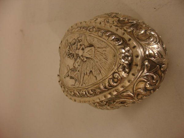 CONTINENTAL SILVER HEART-SHAPED BOX, LID BROKEN