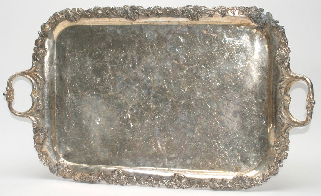 A CHINESE EXPORT SILVER 'CHRYSANTHEMUM' TRAY, MARK OF LUEN WO, SHANGHAI, CIRCA 1880-1925Mar 11, 2026Vintage Silver Plated Serving TrayLarge Vintage Silver Plated TraySilverplated Serving Tray by W & S Blackinton865 Lots AwayTiffany & Co. Silver Plate Handled Serving TrayFeb 26, 2026VINERS OF SHEFFIELD CHASED SILVER PLATE ON COPPER GALLERY TRAY5 days LeftGeorge II Sterling Silver Small SalverFeb 24, 2026Silverplated Gallery Footed Tray517 Lots AwayLARGE WILCOX SILVER PLATED SERVING TRAY PLATTERMar 07, 2026Silver Chiseled Octagonal Tray with Farming Scene Patterns6 days LeftGEORG ROTH & CO. .800 SILVER OVAL TRAY, C. 19006 days LeftGorham Sterling Silver Cinderella Flatware Plate Tray A20264Mar 04, 2026Dominick & Haff Sterling Silver TrayMar 07, 2026London 1738 by John Robertson II A George II sterling silver waiter2 days Left2 Silver Trays & Continental Silver TrayFeb 24, 2026A FRENCH SILVER PLATE TWIN HANDLED TRAY18 hrs Left