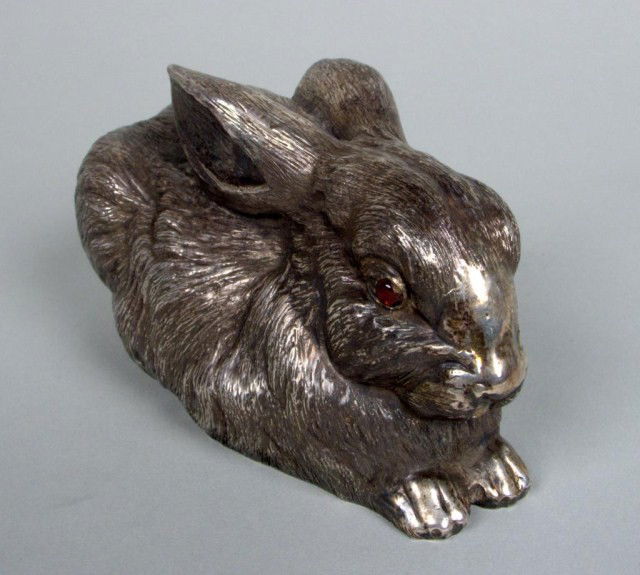 Continental Silver Rabbit Silver figure with red gl