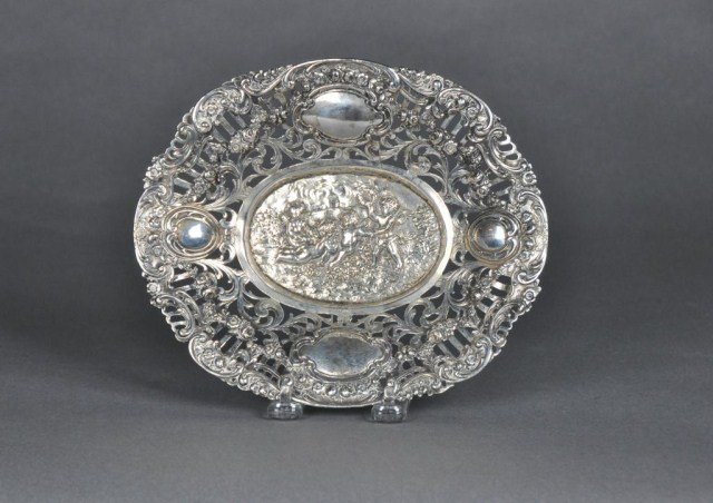 Continental silver reticulated oval tray