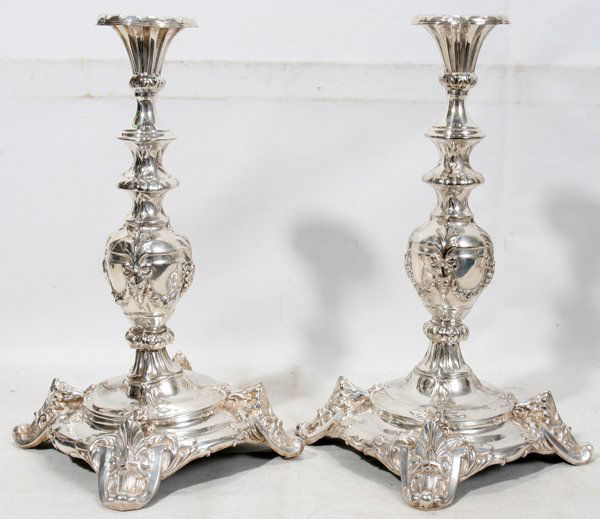 CONTINENTAL SILVERPLATE CANDLESTICKS, 19TH C.,