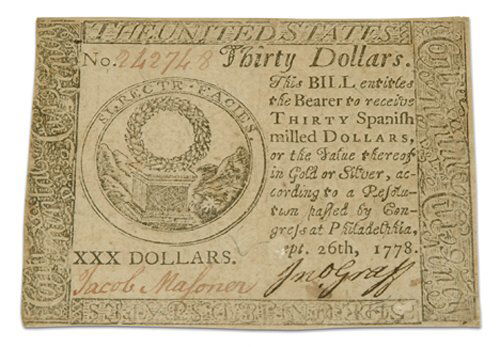 CONTINENTAL THIRTY DOLLAR COLONIAL CURRENCY NOTE