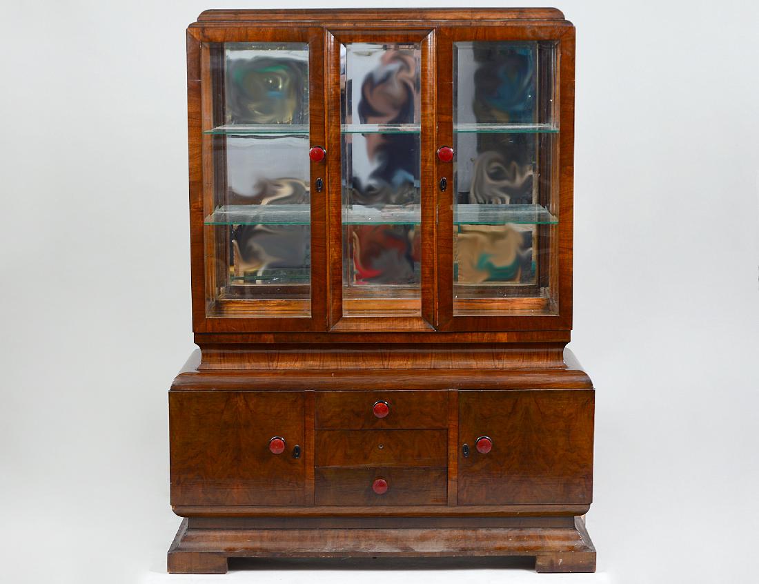 CONTINENTAL WALNUT ART DECO DISPLAY CABINET