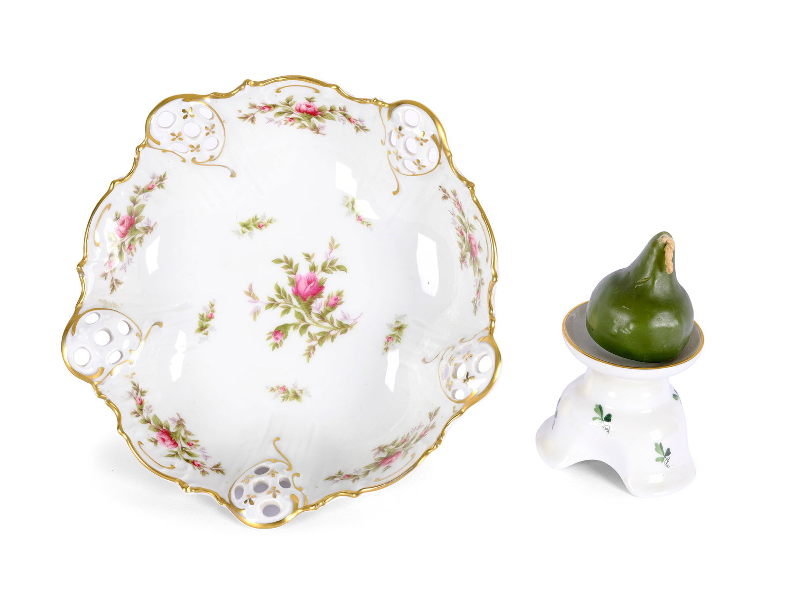 Convolute porcelain: bowl and candlestick