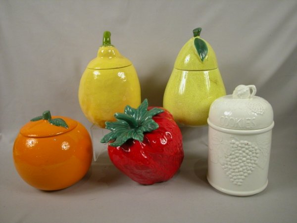 Cookie Jar Group 5 Jars Lemon, Pear, Organge,