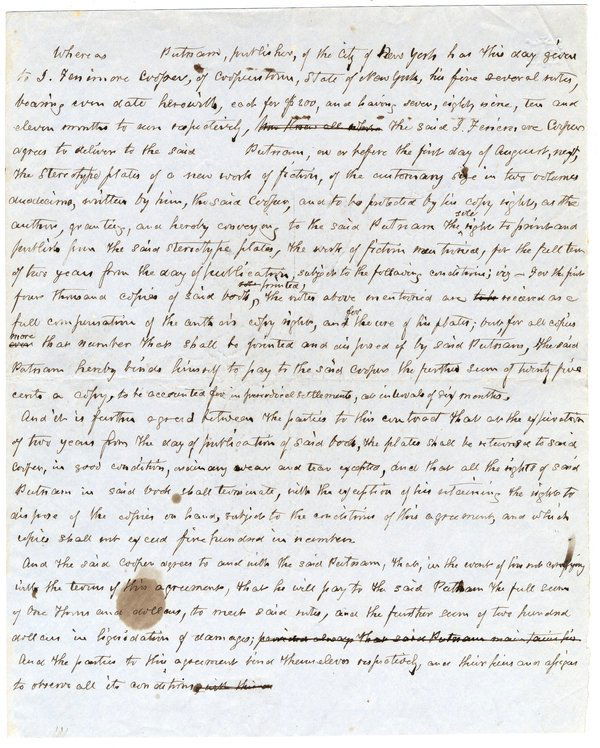 COOPER, JAMES FENIMORE - ALS, book contract!