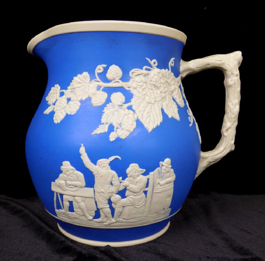 SoldCOPELAND SPODE JASPERWARE PITCHERCOPELAND SPODE JASPERWARE PITCHER The pitcher is cobalt blue and white and the bottom is marked "Copeland Spode England". ; Condition - No signs of chips or cracks. Needs cleaned. ; Measures: 6.5"H xSee Sold Price