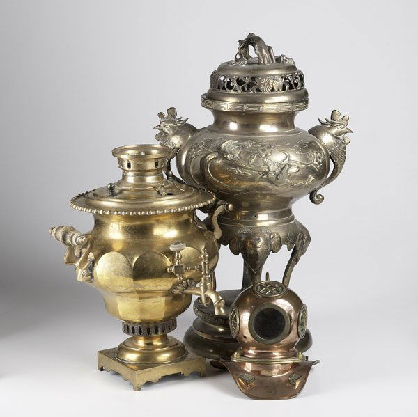 LOT OF BRASS KEROSENE LAMP BASESFeb 26, 2026Antique Copper SamovarGeorgian Copper & Brass Samovar circa 1810Vintage Chinese Gilt Gold Copper Incense Burner(2) COPPER CHAFFING DISH & FIGURAL MOUNTED SAMOVAR / HOT WATER URN4 days Left3 Antique Copper & Brass Powder FlasksMar 07, 2026A GROUP OF SIX BRASS BUTTER LAMPS AND A THREE-HEADED BRASS FIGURE, 19TH-20TH CENTURY AND EARLIERMar 11, 2026Pr Copper & Brass Powder Flasks G & J W HawksleyMar 07, 2026A Qing Dynasty copper-gilt amphorae three-legged aroma diffuserMar 14, 20263 pcs Vintage Silver Plate Tea Pots, incl. 2x Silver on Copper Pieces. Very Good Condition.Three Small Tripod Bronze Incense BurnersMar 05, 2026Late 19th Century Brass Turkish Semaverler/Samovar2 days Left3 pcs Vintage Silver Plated Tea Pots, incl. 1x W.W.H. & Co. & 1x Homan. Very Good Condition.3 pcs Vintage Silver Plated Tea Pots, incl. 1x Brooklyn & 1x Aurora? Co. Very Good Condition.Pair of Chinese Bronze Lamps2 days LeftA piece of Shang Zhou copper gilt gluttonous pattern three-legged incense burnerFeb 28, 2026