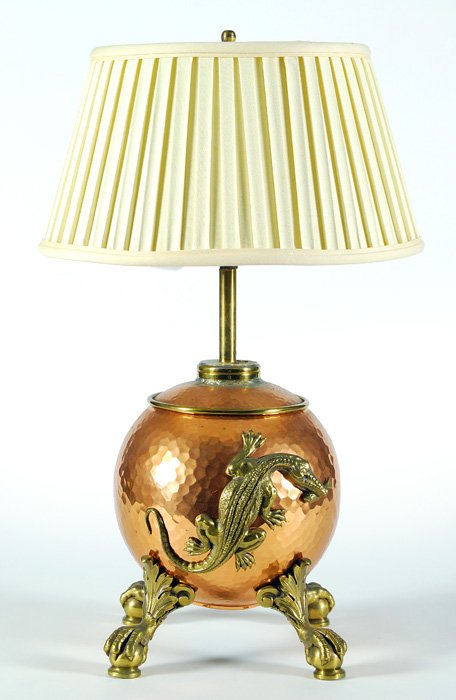 SILVERED COPPER SHAPED VESSEL MOUNTED AS TABLE LAMP - H: 39 1/2 in, overall with shade..Sloans & Kenyon4.3(87)$1204 days Left