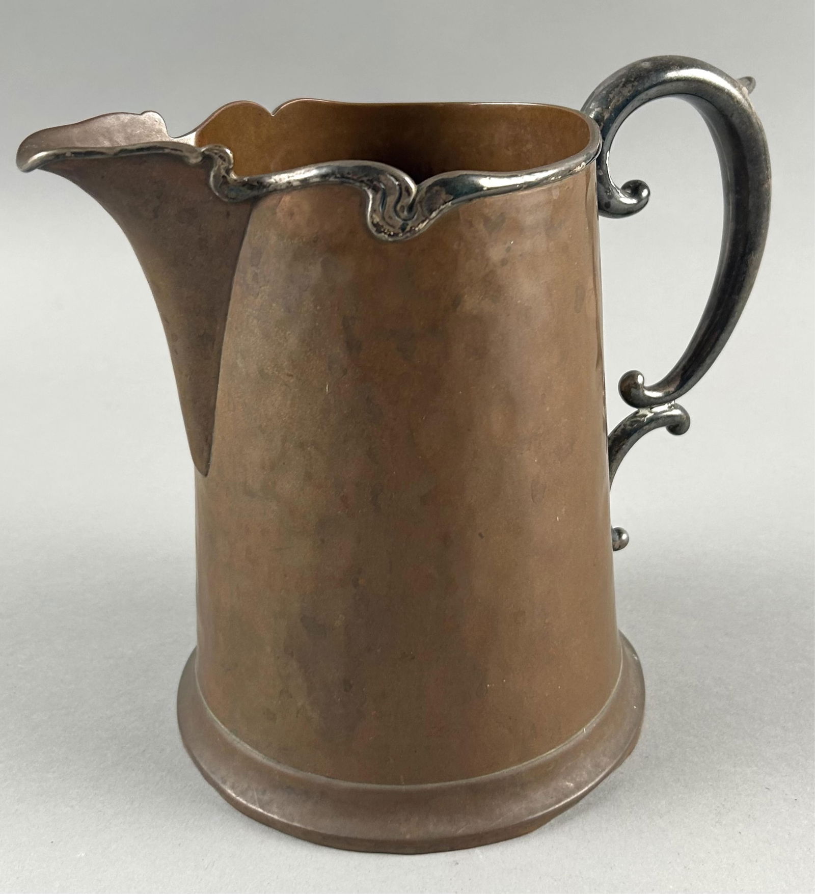 COPPER AND SILVER PITCHER 19th Century Height 6".
