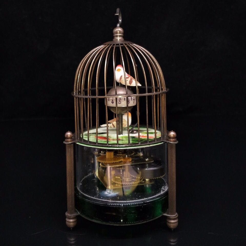 Antique Chinese Reed Rattan Birdcage Porcelain Bowls, Jade, with Pin LockAn English Brass Lantern ClockMiniature Brass Bird Cage Annular Clock, early 20th c., H.- 11 1/4 in., W.- 5 1/4 in., D.- 5 3/4 in.6 days LeftGerman wind up automaton bird in cage clockwork music box. 11 1/2"H x 7 1/4"Diam.7 hrs LeftA singing bird in a large decorated bird cage musical automaton3 days LeftSinging Caged-Bird Automaton Music Box6 days LeftVintage Musical Bird Cage1 day LeftVintage Singing Caged Bird AutomatonMar 01, 2026A vintage chromed brass birdcage shaped automaton clock3 days LeftGerman Automation Singing Bird Music CageMar 07, 2026Vintage Wood & Wire Bird Cage. Good Condition. Measures 12" x 12" x 26" See pics.LARGE FRENCH SINGING BIRD IN CAGE AUTOMATON1 day LeftDecorative Metal Bird Cage on StandMar 08, 2026Continental Wrought Iron and Wood Bird Cage5 days LeftLate Victorian Solid Bronze Wire Eastern Spire Birdcage w/ Pin LockMar 20, 2026Rare antique handcrafted wooden birdcage inlaid with gemstones6 hrs Left