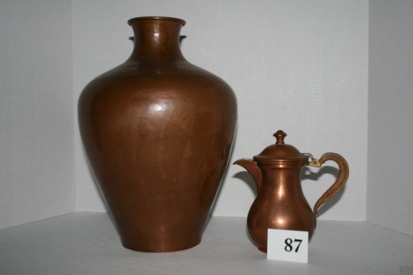 ASSORTED COPPER ARTICLES, LOT OF SIXMar 04, 2026Lot of 3 Southwest Style Copper Kitchenware ItemsMar 04, 2026Lot of 2 Antique Japanese Copper Enameled Cloisonne VaseMar 01, 2026ASSORTED EUROPEAN AND OTHER COPPER PITCHERS AND TEA POT, LOT OF FIVEMar 04, 2026PRIMITIVE TERRA COTTA SHEPHERDS GOURD / WATER VESSELS LOT OF 27 days LeftCollection of 5 Antique Copper Haystack JugsHand Forged English Copper and Brass Handled Coal Scuttle w/ Hammered Copper Jardiniere/CauldronMar 16, 2026Two Fine Southern Stoneware Pieces by Kim Elington7 days LeftLarge Arts & Crafts Hammered Copper Jug, c.1900Arts & Crafts Hammered Copper VaseMar 17, 2026Antique Scandinavian Handwrought Copper VesselMar 17, 2026Copper Pitcher w/ Hinged lidMar 01, 2026HAMMERED COPPER & BRASS INDIAN VASE5 days LeftEarly 19th Century Handcrafted Hand Hammered Copper Jug /Container With Handle and Cooking Pot - SetCOPPER VESSEL W/ HANDLE , COPPER POT7 days LeftCopper Art Deco Pitcher, Chase Brass and Copper CompanyMar 10, 2026