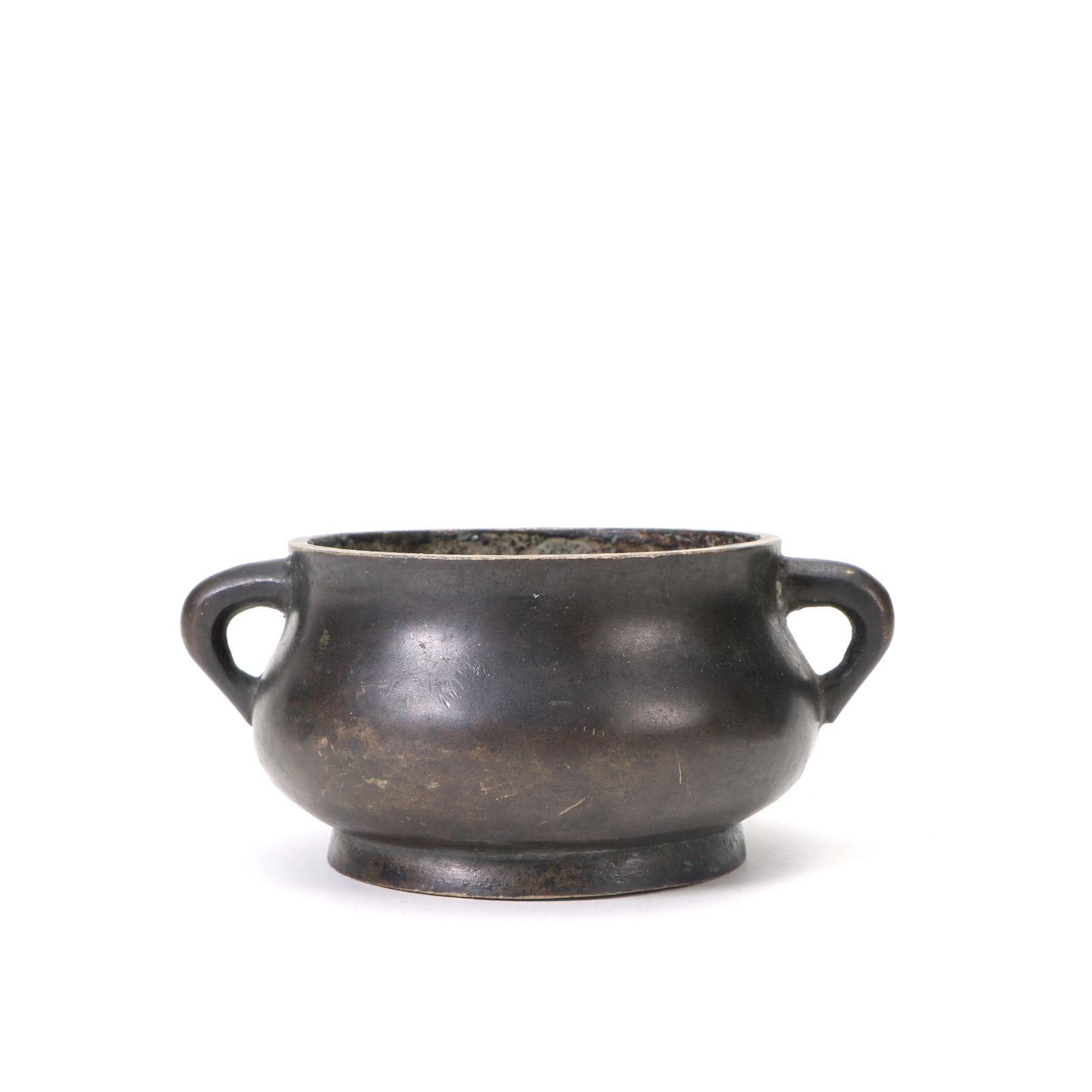 SoldIn the Ming Dynasty, a copper double ear incense burnerHeight: 7cm, width: 20cm, weight: 1507gSee Sold Price