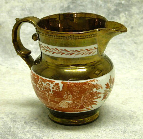 Copper Lustre Pitcher with Transfer.