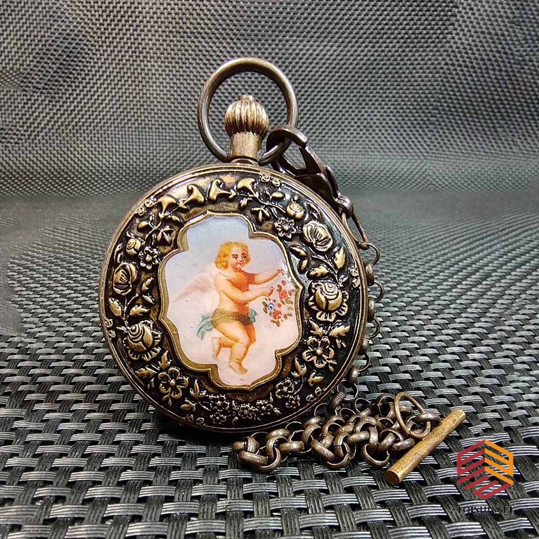 Copper Mechanical Angel Double Opening Pocket Watch