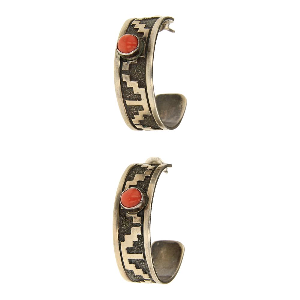Zuni Mediterranean Coral Needlepoint Hoop Earrings