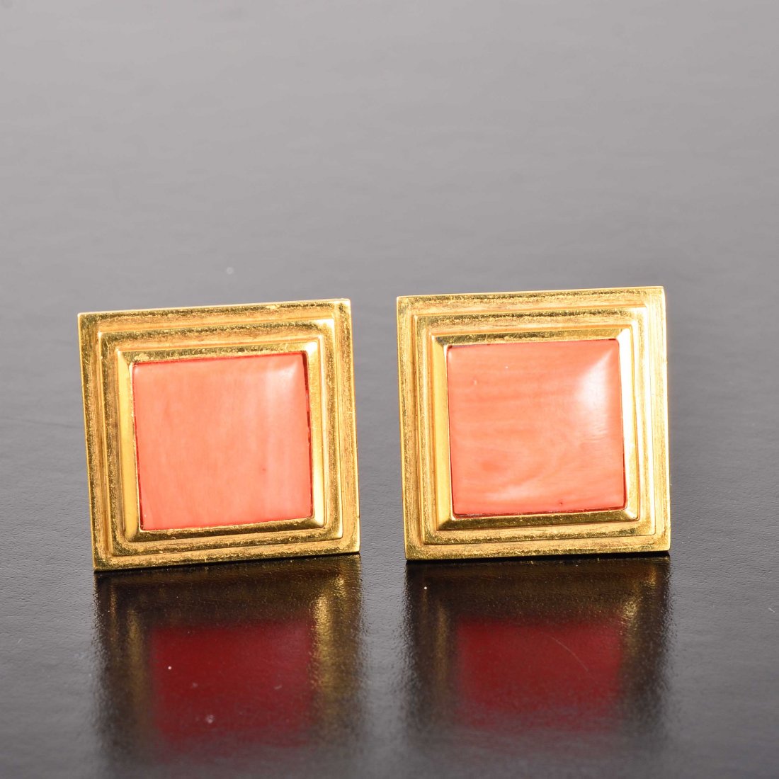 Pair of 14K Gold Coral Earrings