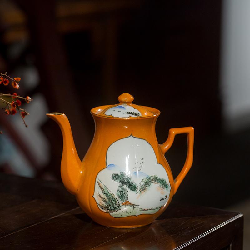 Coral red glaze translucent landscape teapot