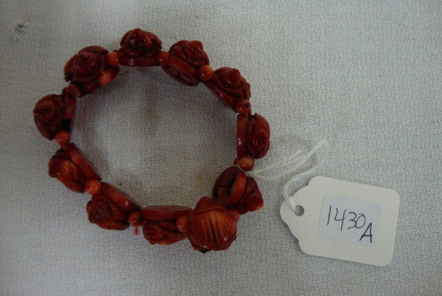A SOUTHERN RED AGATE CARVED BEAD BRACELET