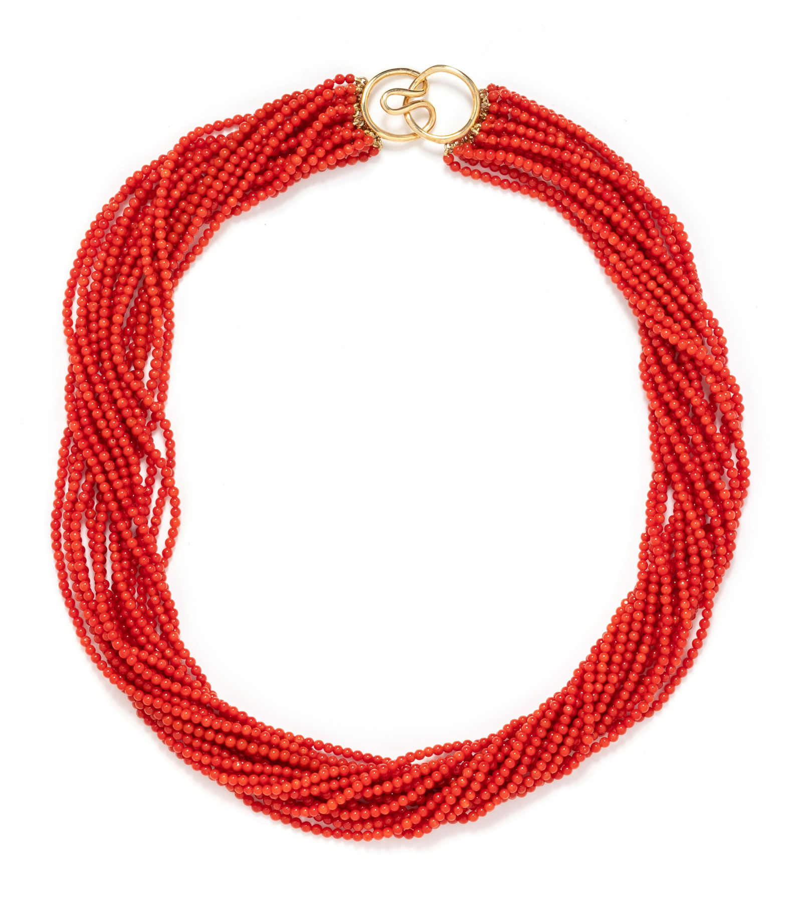 Bold Red Natural Coral Twisted Multi-Strand Necklace with 18kt Yellow Gold Clasp - Weight 50.1 grHIGH END GEMS & JEWELS LTD4.3(1)$5506 hrs Left