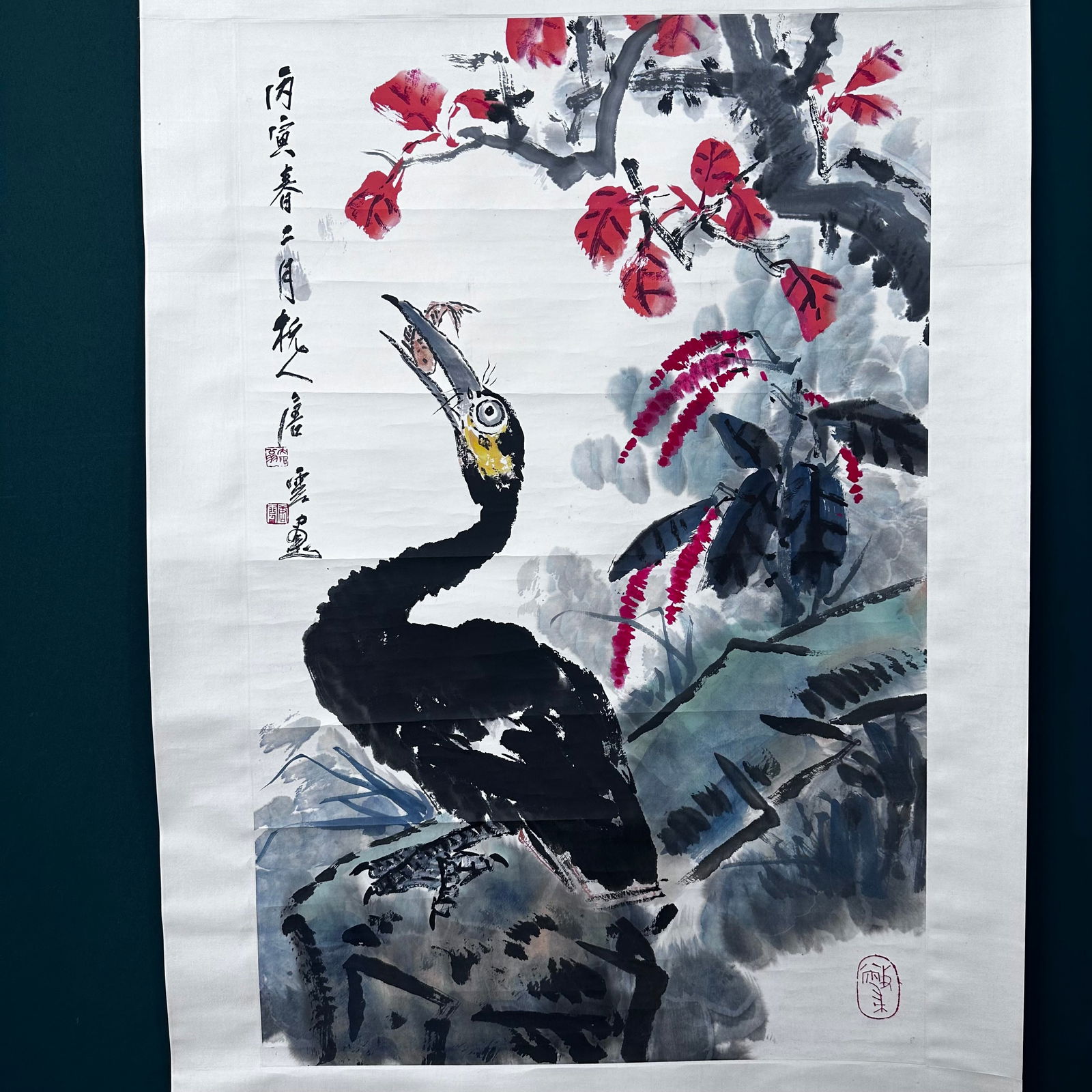 “cormorant" ink and color hanging scroll