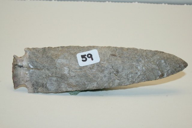 SoldOnadaga Chert? Corner Notch Point4 ¼” Onadaga Chert? Corner Notch Point, Marked Mich. 1951, 1” of tip restored Late Bob Leach of Battle Creek MichiganSee Sold Price