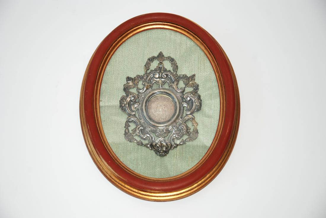cornicetta in argento sec.XVIII con scudo. Genova