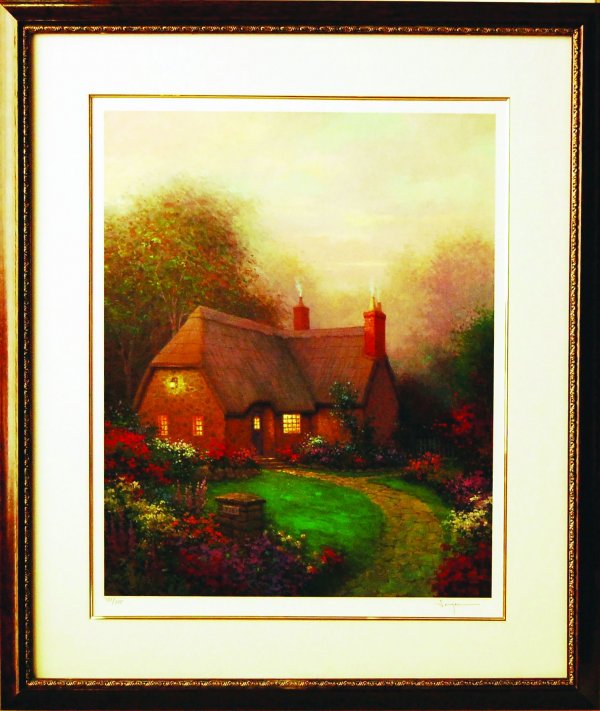 SoldC. JAFFEY SCENIC LANDSCAPE FRAMED PAINTING 31"C. JAFFEY COTTAGE AT DUSK SPRING SCENIC LANDSCAPE FRAMED PAINTING BABBLING BROOK STONE BRIDGE FLOWERS COTTAGE RETREAT WALL ART HOME DECOR -APPROXIMATELY 27" X 31" FRAME-20" X 24" CANVASSee Sold Price