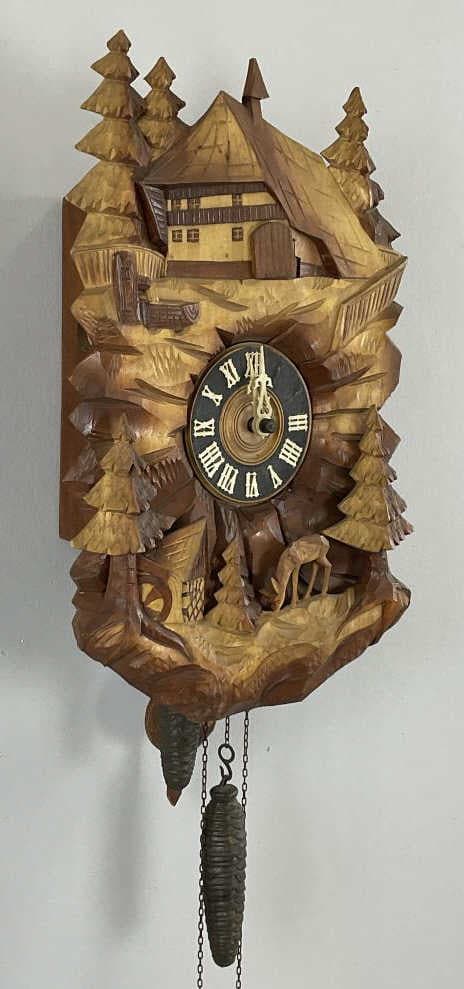 German Hunter 1-Day Black Forest Cuckoo ClockFeb 28, 2026Small Antique German Cuckoo Clock – One WeightMar 15, 2026Large German Cuckoo Clock – Fully WorkingMar 15, 2026Large Black Forest Cuckoo Clock, 8-Day MovementMar 15, 2026Black Forest Cuckoo Clock with Hand Carved DetailsFeb 28, 2026German black Forest Owl Cuckoo Clock #536/1000 Produced with Documents & Orig. BoxMar 15, 2026Vintage German Cuckoo Wall Clock – Hand-Carved, Pinecone WeightsMar 15, 2026Large Black Forest German Carved 8 Day Musical Cuckoo Clock - Boy & HorsesMar 15, 2026Vintage Regula German Black Forest Cuckoo ClockMar 10, 2026Painted Wood Cuckoo ClockMar 04, 2026Wood Carved Cuckoo ClockMar 04, 2026Howard Miller Tempus Fugit Grandfather ClockMar 04, 2026Junghans German Free Swinger Wall ClockMar 07, 2026Vintage New England Clock Co Wall Clock Case & Movement only, missing parts, 22h x 16w x 5d inchesExceptional Gothic Revival Walnut Bracket Wall Clock, Eight-Day Chain FuseeMar 07, 2026Oak Arts & Crafts Cuckoo Clock by American Cuckoo Clock Co.Mar 07, 2026