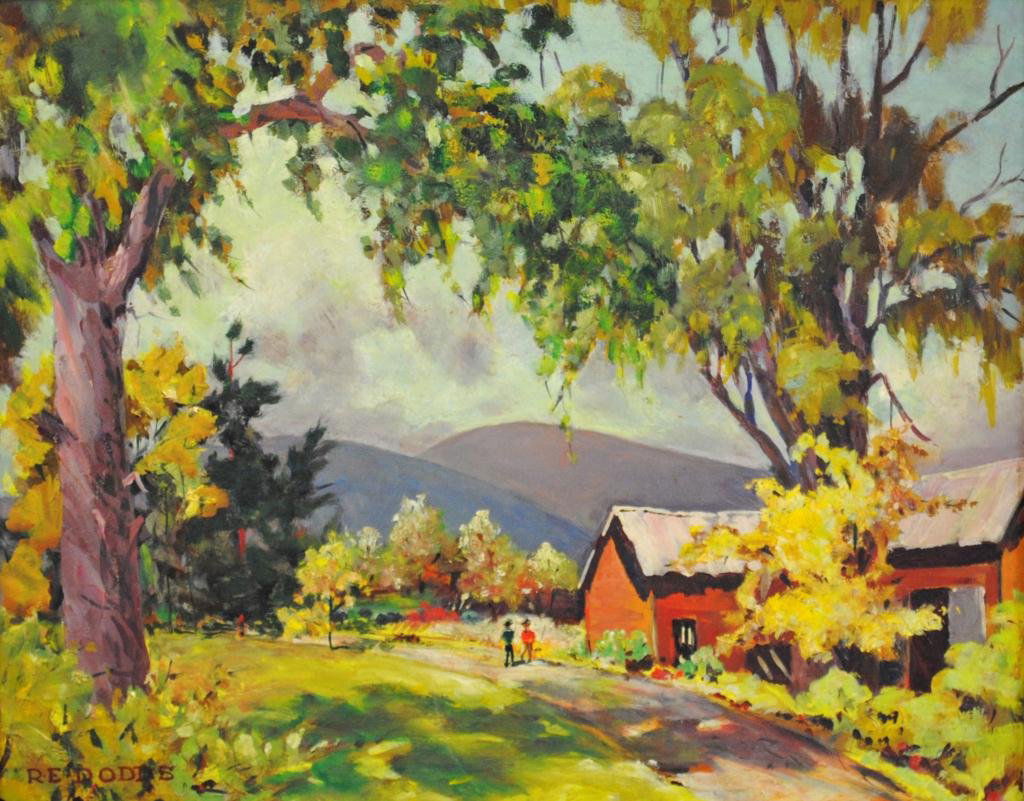 COTTAGE LANDSCAPE PAINTING SIGNED R. E. DODDS