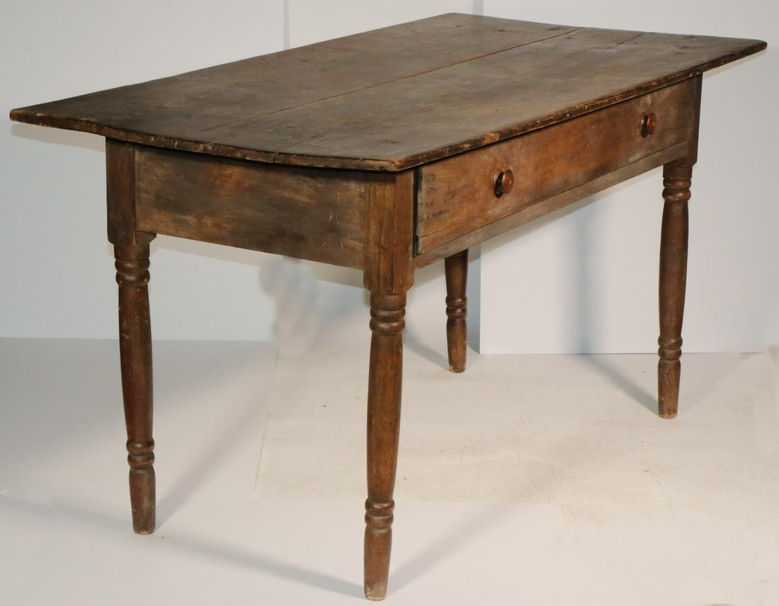 George III Mahogany Console Table2 hrs LeftAntique One-Drawer TableColonial style slant front writing desk w/one drawer, turned legs. Interior has one drawer & 46 days LeftHandsome American Queen Anne Black Walnut Harvest TableFeb 28, 2026Southern Cherry One-Drawer Work Table with Spiral Turned Legs, ca.1840-60Mar 07, 2026AMERICAN SHERATON STYLE PINE DROP-LEAF TABLE.1 day LeftRustic Antique Farmhouse Table with Drawer and Turned LegsFeb 27, 2026Southern Walnut One Drawer Pin-Top Work Table1 day LeftWalnut One Drawer Stand on turned legs, has dovetailed drawer, wood pull, one board top.6 days LeftHandsome American Chippendale Black Walnut Hall TableFeb 28, 2026Stretcher Base Tavern Table, pinned breadboard top, one dovetailed drawer with wooden pull, nicely6 days LeftNorth Carolina Queen Anne Walnut Single Drawer TableFeb 26, 2026French Provincial Walnut Writing Table, late 19th c., H.- 25 1/2 in., W.- 27 1/2 in., D.- 17 1/2 in.Feb 27, 2026Cabinet Made Walnut Harvest Dining TableFeb 27, 2026FRENCH PROVINCIAL WALNUT DROP-LEAF WORK TABLE3 days LeftSPINDLE GALLERY WOOD WRITING DESK WITH TURNED LEGS3 days Left