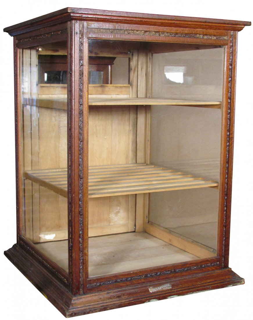 SoldCountry Store Holland's Bread Counter Top Display Case, oak w/etched glass front panel,Country Store Holland's Bread Counter Top Display Case, oak w/etched glass front panel, screen panel door & 2 glass shelves, VG cond, 29"H x 23.5"Sq.See Sold Price