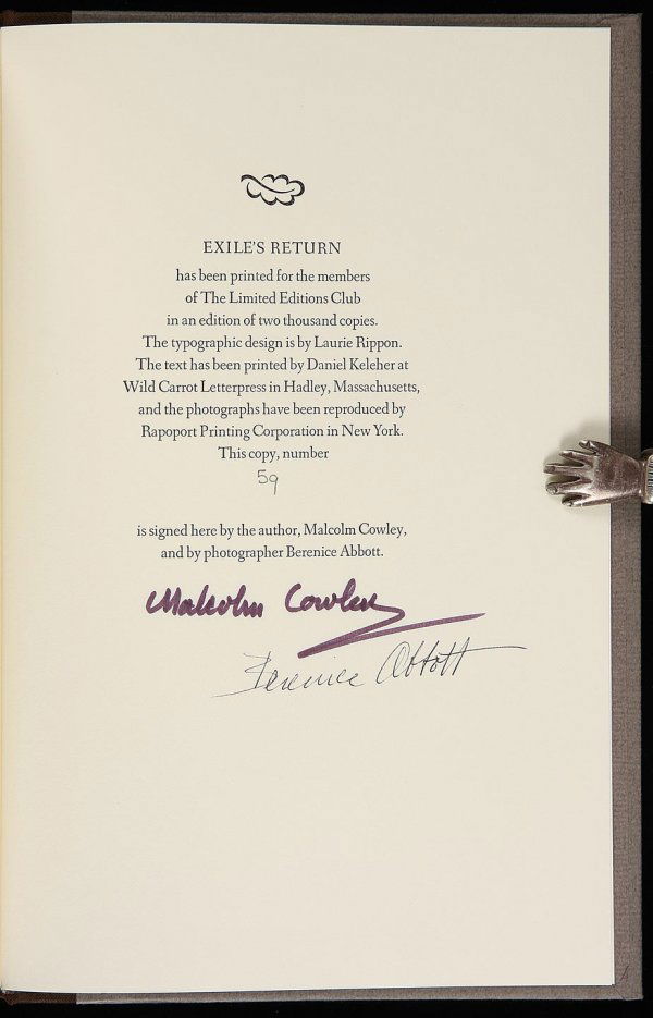 Cowley's Exile's Return, LEC Signed, Limited