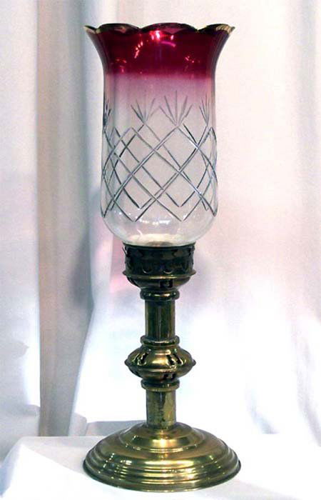 CRANBERRY FLASH GLASS CANDLESTICK