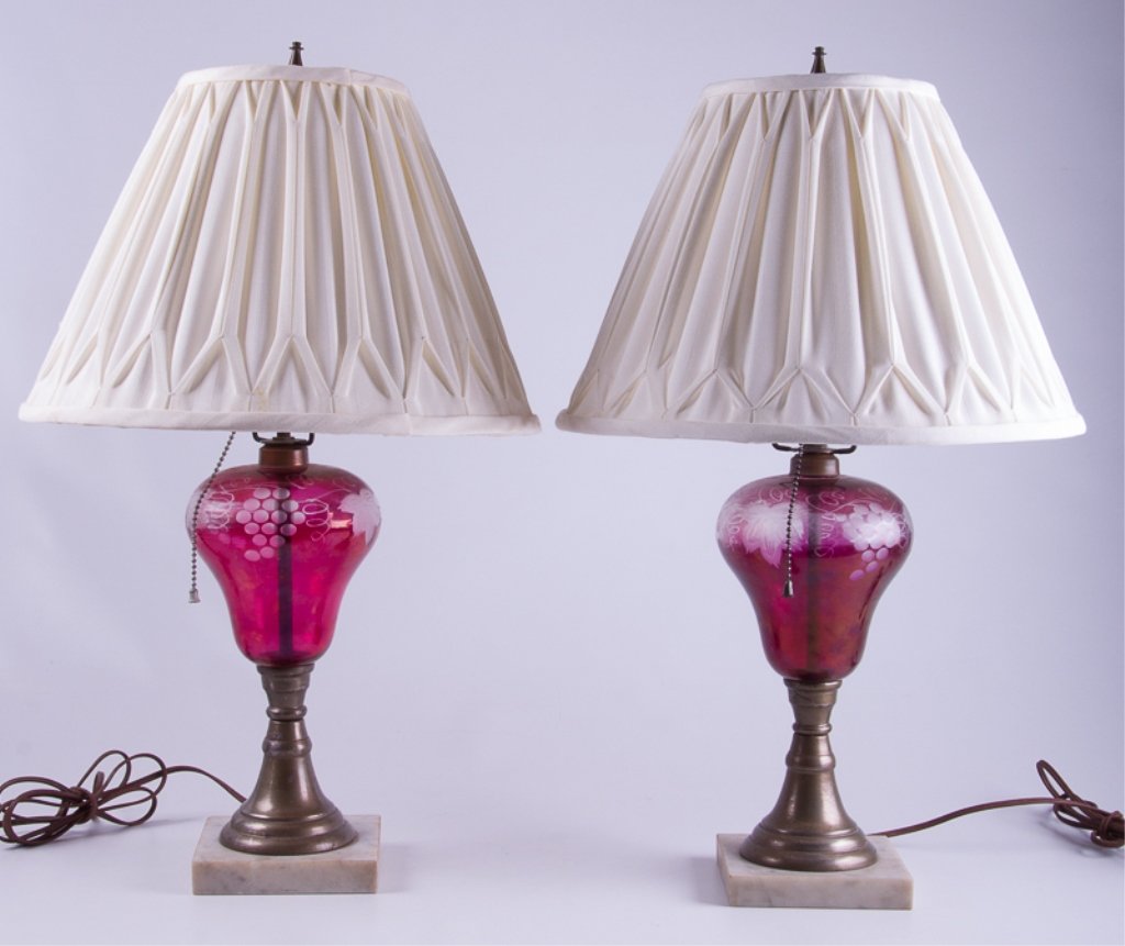 Cranberry Glass Lamps, Pair