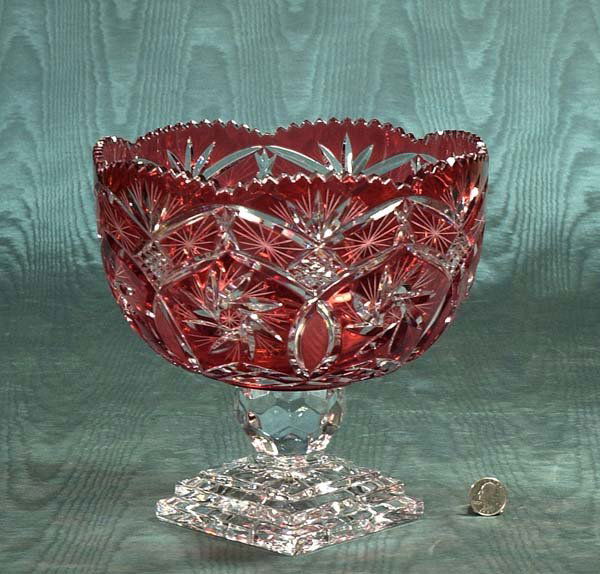 Cranberry overlay cut crystal compote with pin whe