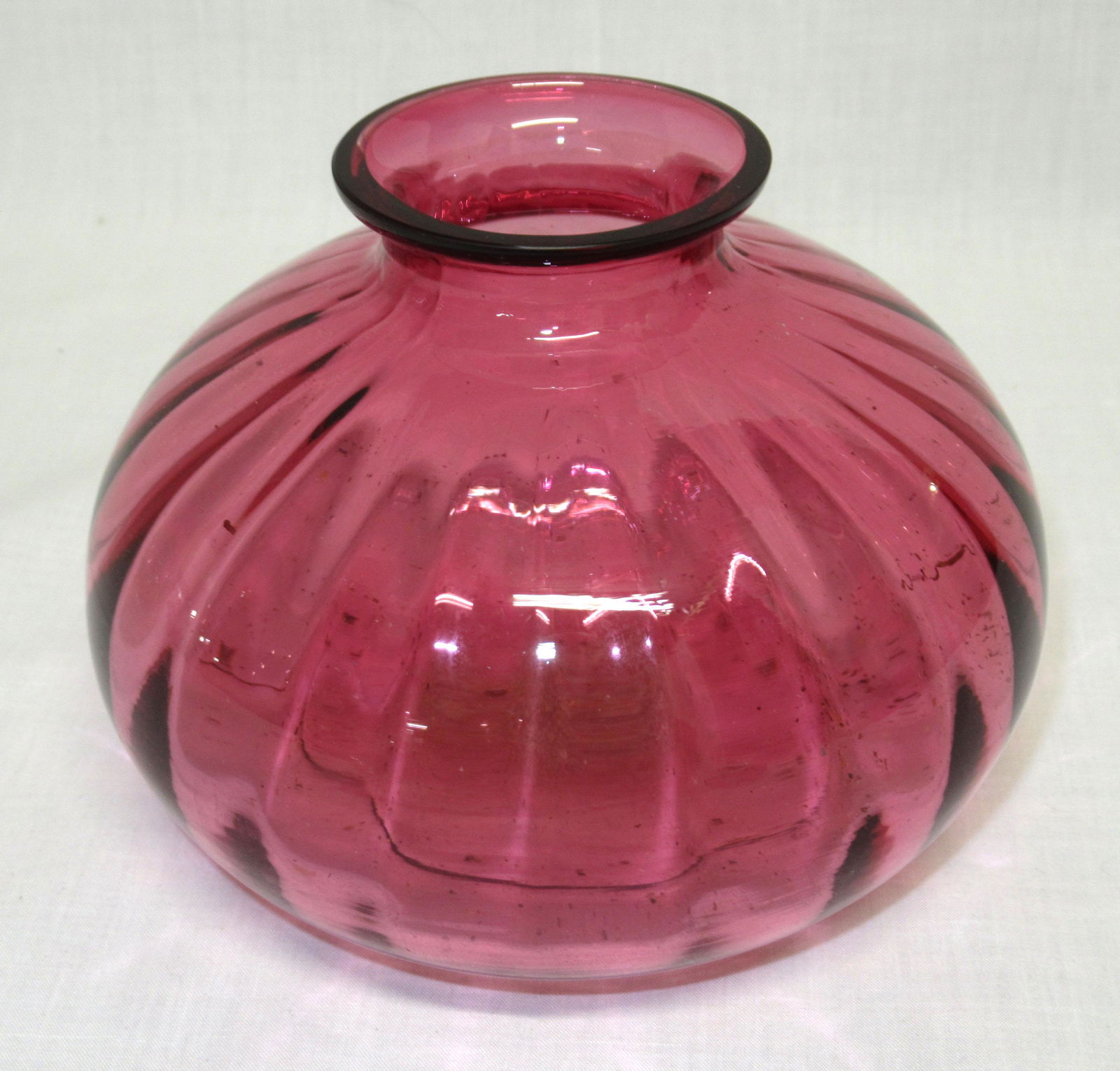 Vintage Pilgram Cranberry Glass Optic Ripple Vase