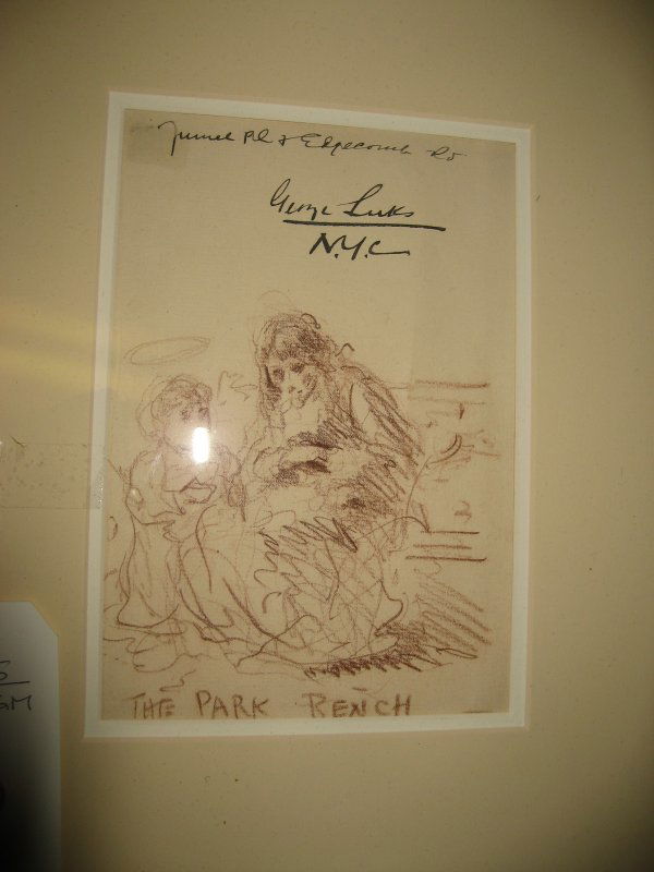 CRAYON ON PAPER - "PARK BENCH", SIGNED: GEORGE LUK