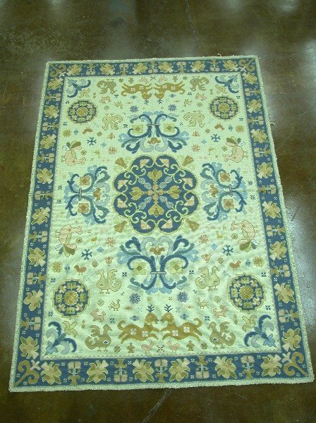 Cream background rug with blue border,
