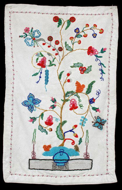 Cree Beaded Panel on Doeskin with Floral and Squir