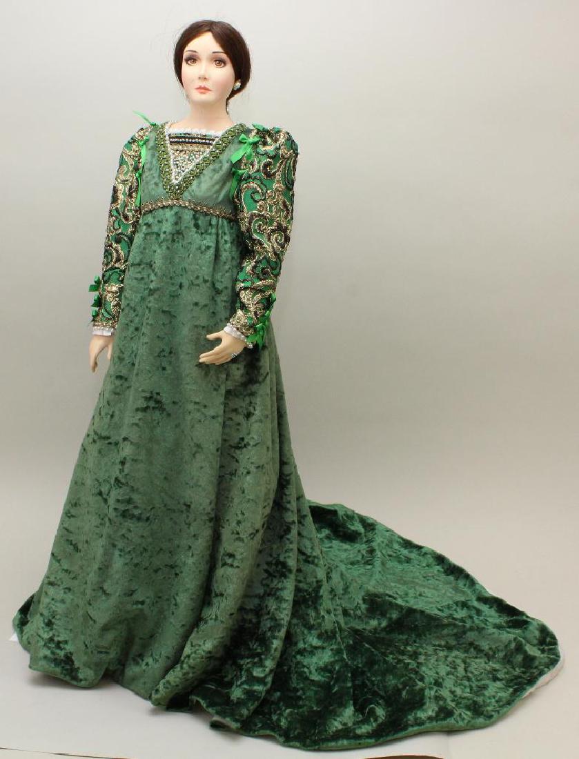 SoldCREES & CO., 27" 1995 "JULIET" DOLL PROTOTYPE.This doll is signed on the back of the neck. Painted features, brown human hair wig. Heavy vinyl shoulder head ties onto torso. Lower arms snap onto upper arms. Beautifully dressed in green velvet andSee Sold Price